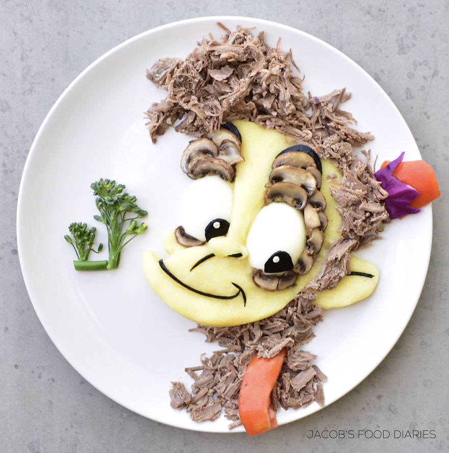 أم تجعل ابنها يتناول طعاماً صحيّاً عن طريق تحويله إلى رسوم كاريكاتورية