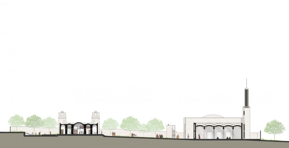 لتجديد المبنى القديم إلى مجده السابق، تتم دعوة البنائين الأصليين للانضمام إلى فريق المشروع. في هذه العملية، يتعرفون على المواد المضافة لتعزيز أدوبي وتقنيات الحماية من التآكل. بدلاً من الأخشاب التقليدية ولكن النادرة في المنطقة، يستخدم التجديد الداخلي المعدن للمساحات الدراسية والجدران والسلالم ومستوى الميزانين، كملمس معاصر للمساحة التقليدية. المبنى الجديد بدوره يفسر منظمة مسجد الهوسا التقليدية مع الدعم الهيكلي والتفاصيل المعاصرة. تتناسب كتلتان ومساحة للصلاة في الهواء الطلق مع الصلوات اليومية أو تجمعات الجمعة أو احتفالات العيد الكبيرة. يؤدي الحوار بين الهياكل الرسمية القديمة والجديدة إلى مزيد من التعاون بين البنائين التقليديين وطاقم البناء.