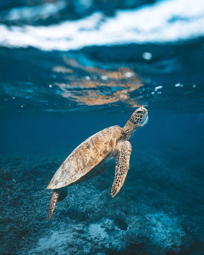 صعود السلاحف البحرية إلى السطح لتنفس، بالقرب من جزيرة هيرون على الحاجز المرجاني العظيم.