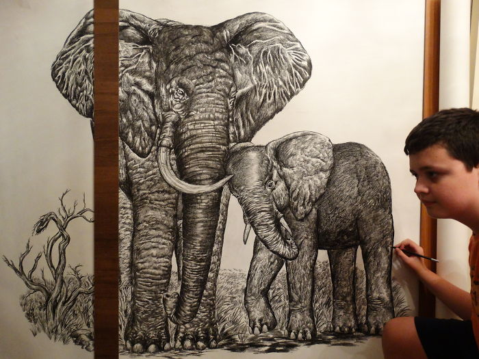 بدأ بالرسم في الثانية من عمره، إليك ما رسمه إلى أن بلغ 16 عامًا